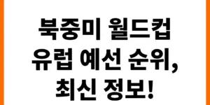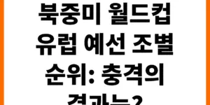2026 북중미 월드컵 유럽 예선이 뜨겁게 달아오르고 있습니다. 치열한 경쟁 속에서 각 팀들의 순위와 예상 결과, 그리고 유럽 팀들의 본선 진출 가능성을 상세하게 분석합니다. 축구 팬이라면 놓칠 수 없는 최신 …