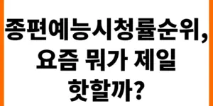 종편예능시청률순위, 요즘 뭐가 제일 핫할까?