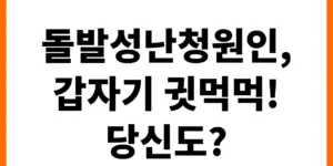 갑자기 들리지 않는 돌발성난청, 단순 피로나 스트레스일까요? 그 원인을 명확히 알고 예방하는 것이 중요합니다. 돌발성난청의 다양한 원인과 증상, 그리고 빠른 대처법까지 알아보고 건강한 청력을 지키세요. 돌발성난청이란? 갑자기 찾아오는 귓먹먹함, 바로 …