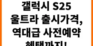 기다리고 기다리던 갤럭시 S25 울트라의 출시 가격이 드디어 공개되었습니다. 역대급 성능을 자랑하는 플래그십 스마트폰, 과연 얼마일까요? 최신 루머와 예상 스펙을 바탕으로 현실적인 가격을 예측하고, 놓치면 후회할 사전예약 혜택까지 꼼꼼하게 알려드립니다. …