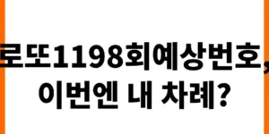 1198회 로또 당첨의 꿈, 현실이 될 수 있습니다. 과거 당첨 번호 통계와 최신 패턴 분석을 통해 엄선한 예상 번호를 공개합니다. 행운의 주인공이 될 수 있는 특별한 비법을 지금 바로 확인해보세요! …