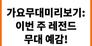 매주 우리를 추억 속으로 안내하는 ‘가요무대’! 이번 주 출연진과 화려한 무대를 미리 만나보세요. 어떤 명곡들이 우리를 울고 웃게 할까요? 놓치면 후회할 가요무대 미리보기, 지금 바로 확인하세요! 이번 주 출연진 매주 …