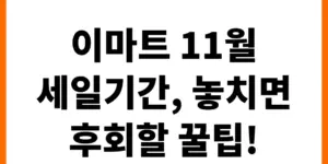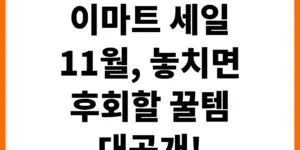 11월, 지갑은 가볍게 쇼핑은 풍성하게! 이마트 11월 세일기간이 돌아왔습니다. 알뜰 쇼핑을 위한 필수 체크리스트부터 숨겨진 할인 꿀팁까지, 이번 세일을 200% 즐길 수 있는 모든 정보를 총정리했습니다. 주요 할인 품목 미리보기 …