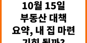 정부가 발표한 10월 15일 부동산 대책의 핵심을 알기 쉽게 풀어드립니다. 대출 규제, 공급 확대 등 주요 변경 사항을 정리하고, 이번 정책이 시장과 내 집 마련에 미칠 영향을 전망해봅니다. 이번 대책, …