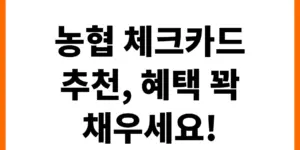 나에게 맞는 농협 체크카드를 찾고 싶으신가요? 꼼꼼하게 비교하고 숨겨진 혜택까지 놓치지 않도록 최고의 농협 체크카드를 추천해 드립니다. 지금 바로 확인하고 현명한 소비 습관을 만들어 보세요! 내게 맞는 카드 찾기 농협 …