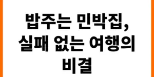 여행지에서의 특별한 한 끼를 꿈꾸나요? 호텔 조식과는 다른, 정성 가득한 집밥을 맛볼 수 있는 ‘밥주는 민박집’의 매력을 소개합니다. 따뜻한 밥상과 함께 잊지 못할 추억을 만들어보세요. 정성 가득, 시골 할머니 손맛 …