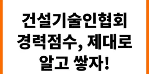 건설기술인협회 경력점수, 어떻게 하면 효과적으로 쌓을 수 있을까요? 실무 경험, 교육 이수, 자격증 취득 등 경력점수 확보 전략을 상세히 알려드립니다. 전문가가 알려주는 꿀팁으로 당신의 경력을 업그레이드하세요! 경력점수란 무엇인가? 건설기술인협회 경력점수는 …