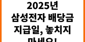 2025년 삼성전자 배당금 지급일에 대한 모든 것을 알려드립니다. 정확한 날짜 확인부터 배당금 지급 방식, 그리고 배당금을 활용하는 꿀팁까지! 투자를 망설이는 분들에게도 유용한 정보를 담았습니다. 지금 바로 확인하고 현명한 투자 계획을 …
