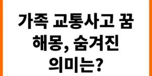 가족이 교통사고 나는 꿈, 길몽일까 흉몽일까? 꿈 해몽을 통해 가족의 안녕과 미래를 점쳐보세요. 혹시 모를 위협에 대비하고, 가족 간의 관계를 더욱 돈독히 하는 계기를 만들어 보세요. 사고 유형별 해몽 가족 …