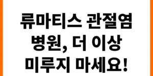 지긋지긋한 통증, 류마티스 관절염일까요? 초기 증상을 놓치지 않고 제대로 진단받는 것이 중요합니다. 나에게 맞는 류마티스 관절염 병원 선택 기준과 치료법, 생활 관리 팁까지 모두 알려드립니다. 물론입니다. 블로그 전체 제목과 소제목의 …