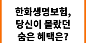 한화생명보험, 이름은 들어봤지만 정작 어떤 혜택이 있는지 막막하셨나요? 사회초년생부터 은퇴를 준비하는 분들까지, 놓치면 후회하는 한화생명보험의 핵심 혜택과 나에게 맞는 상품을 고르는 꿀팁을 알려드립니다. 한화생명, 왜 필요할까? 살아가면서 우리는 예상치 못한 …