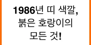 1986년 병인년(丙寅年)은 ‘붉은 호랑이’의 해입니다. 붉은색이 상징하는 열정과 에너지가 86년생의 성격과 운세에 어떤 영향을 미치는지 알아보고, 행운을 부르는 색깔 활용 꿀팁까지 모두 알려드립니다. 물론입니다. 블로그 전체 제목과 소제목에 맞춰, 요청하신 …