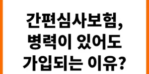 과거 병력이나 만성질환 때문에 보험 가입을 포기하셨나요? 간편심사보험은 단 몇 가지 질문만으로 가입 가능한 상품입니다. 까다로운 심사 없이, 아픈 사람도 든든한 보장을 받을 수 있는 간편심사보험의 모든 것을 알려드립니다. 간편심사보험, …