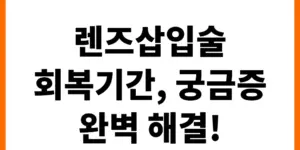 렌즈삽입술 후 회복기간 동안 무엇을 주의해야 할까요? 빠른 회복을 위한 팁과 통증, 시력 변화 등 궁금한 점들을 속 시원하게 알려드립니다. 렌즈삽입술 회복기간, 더 이상 걱정하지 마세요! 회복기간의 모든 것 안녕하세요! …