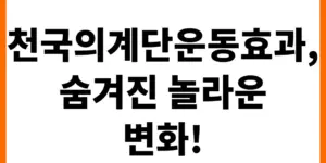 천국의계단운동, 단순히 힘들기만 할까요? 이 글에서는 천국의계단운동의 다이어트, 근육 강화, 심폐지구력 향상 등 놀라운 효과를 자세히 알아봅니다. 효과적인 운동 방법과 주의사항까지, 여러분의 건강을 위한 최고의 가이드가 될 거예요. 칼로리 소모 …