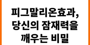 기대와 믿음이 현실을 바꾼다는 놀라운 ‘피그말리온효과’. 이 강력한 심리 법칙을 이해하고 일상에 적용하여 원하는 결과를 만들어내는 방법을 알아보세요. 당신도 주인공이 될 수 있습니다! 피그말리온효과란? 안녕하세요! 여러분의 잠재력을 깨우는 비밀, 피그말리온효과에 …