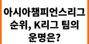 2023-24 AFC 아시아챔피언스리그 조별리그가 막바지를 향해 달려가고 있습니다. K리그 팀들의 현재 순위와 16강 진출 가능성을 알기 쉽게 정리하고, 남은 주요 경기 일정을 전망해 봅니다. ACL 조별리그 현재 순위 2023-24 시즌 …