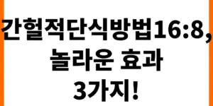 건강하고 효과적인 다이어트 방법으로 주목받는 ‘간헐적단식방법16:8’. 16시간 단식과 8시간 식사의 간단한 원리로 체지방 감소, 혈당 조절, 집중력 향상 등 다양한 이점을 얻을 수 있습니다. 이 글에서 16:8 간헐적 단식의 구체적인 …